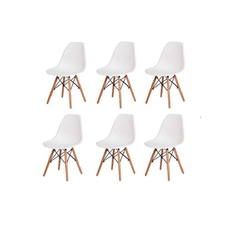 Kit Com 6 Cadeira Charles Eames Eiffel Dkr Wood Branca - Branco