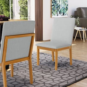 Kit Com 6 Cadeiras Daniela Madeira Maciça Estofada Para Mesa De Jantar Detalhe De Madeira Nas Costas Linho Cinza 407 - Cadeiras Para Sala De Jantar Estofadas
