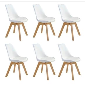 Kit Com 6 Cadeiras Leda Branca - Charles Eames Wood Com Almofada Cadeira Leda Charles Eames Wood Do designer finlandes Eero Saarinen, a cadeira com assento estofado Saarinen representa um trabalho icônico de design da década de 50, juntamente com a Eames. Sua concha ergonômica é produzida em PP (Polipropileno) e conta com assento fixo em tecido sintetico (PU). Seus pés são feitos em madeira com ótimo acabamento. Adequa-se perfeitamente para compor conjunto de mesa de jantar ou qualquer outro ambiente em sua casa ou escritório. Ideal para receber amigos e familiares com um toque de elegância e charme.