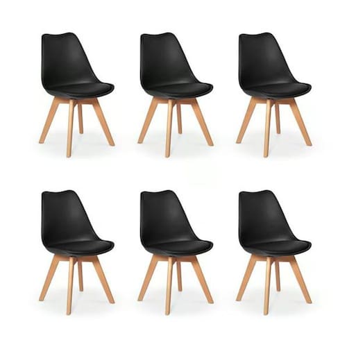 Kit com 6 Cadeiras Leda Preta - Charles Eames com Almofada - Preto