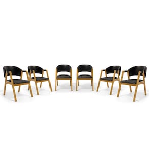 Madeira maciçaKit Com 6 Cadeiras Leticia Madeira Maciça Estofada Para Mesa De jantar Courino Preto 503 - Cadeiras Para Sala De Jantar Estofadas