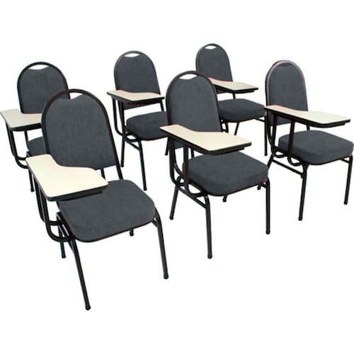 Kit com 6 Cadeiras Universitárias com prancheta para Auditórios Linha Hotel Cinza Escuro – Tonalidade da Cor: Cinza Escuro     –    Marca: Design Office Móveis  - Modelo: Kit com 6 Cadeiras Universitárias com prancheta para Auditórios Linha Hotel Cinza Escuro    O Kit com 6 Cadeiras Universitárias com prancheta para Auditórios  e Hotel da marca Design Office Móveis, foi projetado para proporcionar conforto e bem estar, tornando o dia-a-dia mais agradável. Utilizado para compor diversos tipos de ambientes a Linha Hotel da marca Design Office Móveis são modelos de cadeiras para hotéis e auditórios, empresas de treinamento, salas de convenções, auditório e hotéis, com medidas avantajadas, ergonômicas e confortáveis, que se diferenciam de modelos de cadeiras para hotéis e auditórios convencionais existentes no mercado, de fabricação nacional com qualidade e garantia de 1 ano, direcionado para: Hotel , Auditório, salas de convenções, igrejas,empresas de treinamento, escolas, ambientes corporativos e empresas em geral.   A Cadeira é entregue totalmente montada, sem a necessidade de qualquer montagem adicional, é só tirar da caixa e sentar-se.    Dimensões: Largura do assento: 39,0 cm Profundidade do Assento: 41,0 cm Largura do Encosto: 34,0 cm Altura do Encosto: 40,0cm Altura Total: 91,0 cm Profundidade Total com prancheta: 72,5 cm Largura com prancheta: 55,0cm Peso da cadeira: 5kg - Empilhável com até 8 cadeiras sem a prancheta Altura do chão até o assento: 46,5 cm Estrutura da Cadeira: Fixa com 4 pés.  Cor da Estrutura: Preto Com prancheta Kit com 06 Cadeiras   Marca: Design Office Móveis   Revestimento do Assento e Encosto: Material Sintético Garantia: 12 Meses/1 ano cobrindo defeitos de fabricação.  **Medidas aproximadas, podendo haver variações**   Observações Importantes: As medidas descritas nesse anúncio são aproximadas podendo sofrer pequenas variações sendo maiores ou menores.   As cores das fotos do produto são meramente ilustrativas, a tonalidade da cor pode sofrer alterações sendo mais clara ou mais escura.   Ao receber a mercadoria efetuar a conferência. Confira as dimensões do produto e certifique-se de que passará normalmente por elevadores, portas, escadas ou corredores de sua residência.