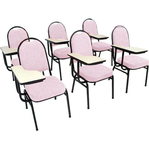 Kit com 6 Cadeiras Universitárias com prancheta para Auditórios Linha Hotel Rosa Claro Tonalidade da Cor: Rosa Claro Marca: Design Office Móveis - Modelo: Kit com 6 Cadeiras Universitárias com prancheta para Auditórios Linha Hotel Rosa Claro