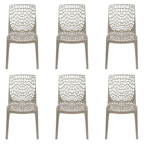 Transforme seu ambiente com o kit 06 Cadeiras Gruvyer, fabricada em polipropileno injetado de alta qualidade e com proteção UV, garantindo resistência, durabilidade e cores preservadas mesmo em áreas externas.