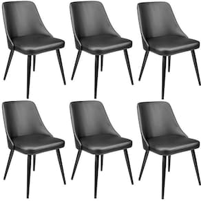 Cadeira em madeira tingida de preto, com assento estofado em PU. Base em aço com pintura à pó. Altura do Conjunto: 76.5 cm Ambiente: null Ambiente Principal: Sala de Jantar Cor: Preto Cor do Produto: Preto Informação Complementar: 6x Cadeira Bárbara Móveis Preto Largura: 51 cm Altura: 76,5 cm Peso: 5,85 kg Profundidade: 58,5 cm Necessita Montagem: Sim