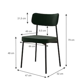 Moderna, confortável e versátil é o que define a Cadeira Mona. É ideal para os amantes dessa tendência que mistura o rústico ao industrial, dando ainda mais personalidade ao seu espaço. Estrutura em aço carbono com pintura epóxi na cor preto, estofadas com revestimento em veludo. Acabamento: Pintura Epóxi Acabamento da Estrutura: Pintura Almofada do assento: Fixa Altura do assento até o chão: 48.0000 Ambiente Principal: Sala de Jantar codigo_ean: 7900288117939 Complexidade da Montagem: Média: pode ser montado por mais de uma pessoa e/ou necessite de maior conhecimento para montagem Cor: Green Cor do Produto: Green Cor dos Pés: Preto Design da Cadeira: Outras Estofadas Dimensões do assento: 6,5 x 46 x 45 Dobrável: Não Enchimento do Assento: Espuma D-28 Escala de Brilho: Fosco Estrutura do Assento: MDP Estrutura do Encosto: Compensado Giratória: Não Itens Inclusos: 6 Cadeiras e Manual de Montagem Linha ou Coleção: Mona Manual de Montagem e Instalação: https://product-hub-prd.madeiramadeira.com.br/992042/documents/672913f7-7de2-44a5-a1c1-6b97449409252823933170817442750847753.pdf Marca: Yescasa Material da Base: Aço Material dos Pés: Aço Necessita Montagem: Sim Origem do Produto: Nacional Peso: 5,28 kg Possui Apoio para Braços: Não Possui Apoio Para os Pés: Não Possui Assento/Encosto Estofados: Possui Encosto e Assento Estofados Possui Espaldar: Sim Possui Rodízio: Não Quantidade de Itens: 6 Recomendações de Uso, Manutenção e Limpeza: Use um pano maico, levemente umedecido com água. É possível o uso de tergente neutro ou sabão neutro. Sistema de Montagem: Sapata fixa; Parafuso; Chpa de aço; Chave para montagem Tipo de Assento: Fixo Tipo de Encosto: Fixo