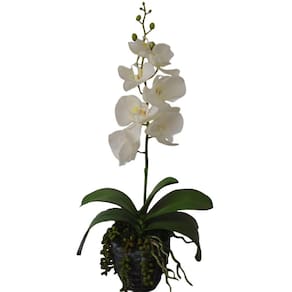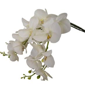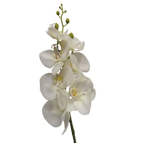 Características do produto - Comprimento: Altura: 84 cm Largura: 13 cm - Cor branca - Material: Silicone, plástico, e arame - Galho Orquídea com flores e botões - Orquídea Phalaenopsis - Produto importado - Quantidade: 06 hastes