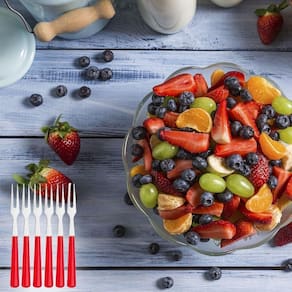 Kit com 6 Mini Garfos para Petiscos Inox Unyhome Kit com 6 Mini Garfos para Petiscos Inox Unyhome Dê um toque de elegância e praticidade aos seus momentos à mesa com o Kit de Mini Garfos para Petiscos da Unyhome. Com design moderno e compacto, são perfeitos para servir com estilo em qualquer ocasião. Usos indicados Ideal para fondue, queijos, frutas, frios e petiscos variados Perfeito para jantares, ções, cafés da manhã e eventos especiais Também pode ser para servir itens em tábuas gourmet e porções individuais Diferenciais do produto Fabricado em aço inoxidável: maior durabilidade, brilho e resistência à corrosão Cabo em plástico resistente na cor vermelha, oferecendo firmeza e um toque vibrante à apresentação Design compacto e elegante: perfeito para servir com sofisticação sem ocupar muito espaço Fácil de limpar e manter, ideal para uso frequente Especificações Marca: Unyhome Dimensões aproximadas: 10,3 cm x 1 cm Quantidade: 6 unidades Transforme sua mesa com pequenos detalhes que fazem a diferença. O Kit de Mini Garfos Unyhome combina estética e funcionalidade para deixar cada refeição mais especial. Marca: Não Informado