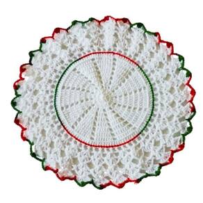 - Material: Fio de alta qualidade, resistente e durável. - Tamanho: Aproximadamente 35cm de diâmetro. - Cor: Branco, Vermelho e Verde - Fácil manutenção: Lavável e prático para uso diário.