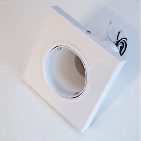 Este Spot semi embutido pode ser instalado tanto na laje como no gesso. Utiliza 1 lâmpada com soquete E27, indicado para uso com lâmpada PAR20.