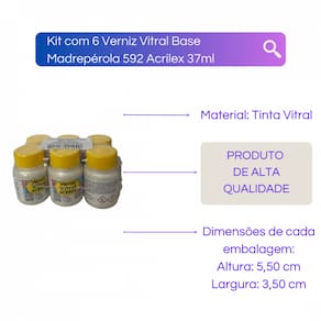 Kit com 6 Verniz Vitral Base Madrepérola 592 Acrilex 37ml