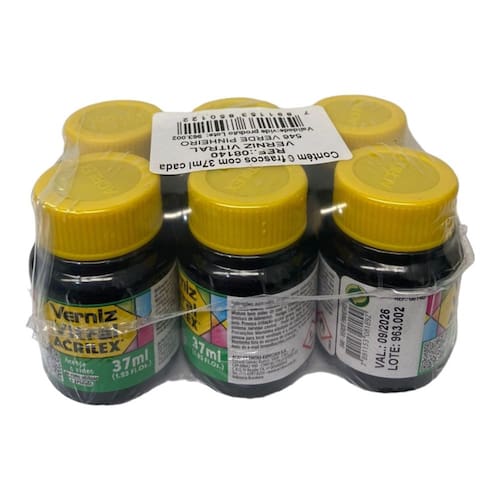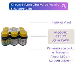 Kit com 6 Verniz Vitral Violeta Cobalto 540 Acrilex 37ml Escolha um dos modelos disponíveis na opção COR do próprio anúncio Kit com 6 Verniz Vitral da Bialluz , é indicado para pinturas em peças de vidro, cerâmica, porcelana e faiança, produto resistente a lavagens , deve ser levado ao forno para completa fixação da pintura. Enviamos seu kit 24 horas após a confirmação do pagamento Largura: 3,50 cm Altura: 5,50 cm Peso: 296 gramas Como aplicar: Antes de aplicar, misture bem com o auxílio de um pincel, aguarde a secagem de 24horas, leve ao forno ainda desligado e deixe aquecer por 30 minutos a uma temperatura de 150° C. Desligue o forno e espere a peça esfriar completamente antes de retirar. Caso tenha alguma dúvida nos mande mensagem que responderemos rapidinho para te ajudar da melhor forma possível. Marca: Bialluz