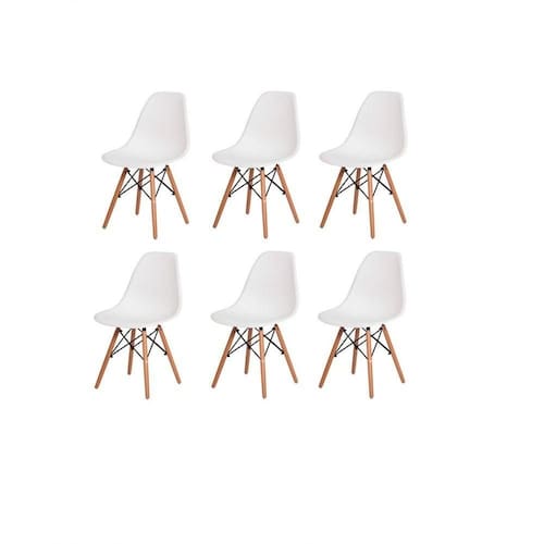 Kit Com 6 Cadeiras Charles Eames Wood Dsw Branca - Base Madeira