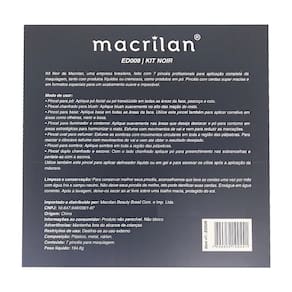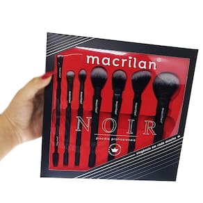 Kit noir ed009 da macrilan, feito com 7 pincéis profissionais para aplicação completa da maquiagem, tanto com produtos líquidos ou cremosos, como produtos em pó. Pincéis com cerdas super macias e em formatos especiais para um acabamento suave e impecável.