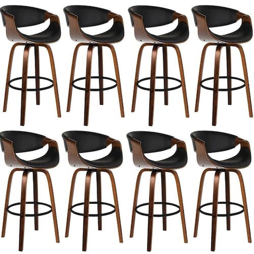 Com design clássico, a banqueta Nicole traz conforto e praticidade para sua casa, além, de proporcionar detalhes amadeirados que garantem elegância para seu ambiente. Banqueta giratória com estrutura de madeira compensada sem ajuste de altura, possui assento e encosto para as costas estofados não reclinável e revestidos em poliuretano (PU) e apoio para pés em aço pintado. Altura do Conjunto: 103 cm Ambiente: null Ambiente Principal: Sala de Jantar Cor: Preto Informação Complementar: 8x Banqueta com Apoio e Base de Madeira Nicole Preto Largura: 54 cm Altura: 103 cm Peso: 7,5 kg Profundidade: 53 cm Necessita Montagem: Sim