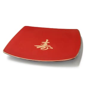 Prato com acabamento vermelho quadrado de excelente qualidade, alto brilho e pintura do ideograma em dourado que representa felicidade. Peça indispensável para amantes da culinária oriental, com cores fortes inspiradoras nas tradicionais decorações japonesas. Perfeita para apreciar a culinária japonesa entre amigos e familiares de forma tradicional. Ideal para servir sushis, sashimis, niguiris e temakis de forma tradicional no uso doméstico ou nos restaurantes. - Facilita e dar mais estilo às suas refeições orientais. Cuidados: - Lavar com água morna e sabão neutro utilizando esponja macia, seguido de pano seco. - Não utilizar produtos químicos ou abrasivos na limpeza. - Não vai a lava-louças.