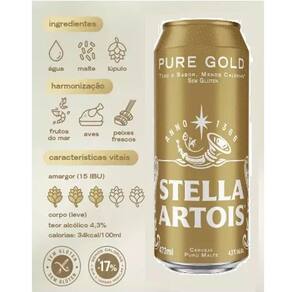 Marca: Stella Artois Volume: 350ml Edição: Pure Gold Sem Glúten Tipo: Lager Teor Alcoólico: 4,8% Origem: Brasil