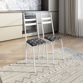 O Kit 2 Cadeiras 061 América Branco - Artefamol, é uma excelente opção para complementar seu ambiente com estilo e qualidade, estrutura do tubo em aço carbono, acabamento em pintura epóxi, assento anatômico com revestimento de espuma e courvin. Deixe sua cozinha mais sofisticada com essas lindas cadeiras. Tá esperando o que? Leve já a sua! Acabamento da Estrutura: Pintura Ambiente Principal: Cozinha codigo_ean: 7900288125569 Complexidade da Montagem: Baixa: pode ser montado por uma pessoa sozinha Cor: Branco/ Mosaico Silver Cor do Produto: Branco/ Mosaico Silver Dobrável: Não Enchimento do Assento: Espuma D-10 Escala de Brilho: Semi-Brilho Estrutura do Assento: MDP Giratória: Não Informações Complementares: Revestimento cor Mosaico Silver Itens Inclusos: 2 Cadeiras e Manual de Montagem Manual de Montagem e Instalação: https://product-hub-prd.madeiramadeira.com.br/864450314/documents/3e751e81-a5e7-4aed-9a6f-2159070c4cc32863826527317449137051703.pdf Marca: Artefamol Material Principal: Aço Carbono Necessita Montagem: Sim Origem do Produto: Nacional Peso: 3,5 kg Possui Apoio para Braços: Não Possui Apoio Para os Pés: Não Possui Assento/Encosto Estofados: Possui Somente o Assento Estofado Possui Rodízio: Não Recomendações de Uso, Manutenção e Limpeza: Limpar com pano levemente umedecido com água Sistema de Montagem: Parafusos