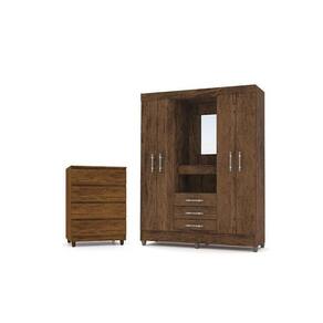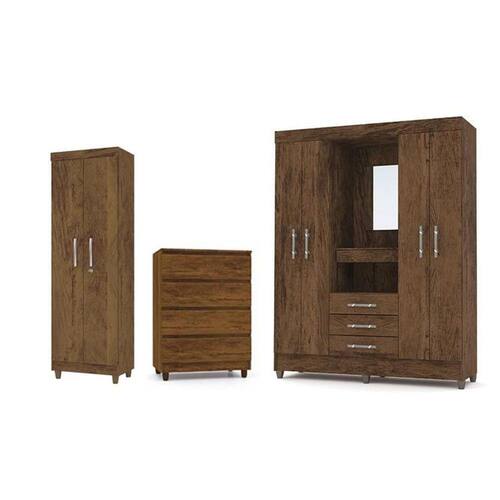 Jogo De Quarto Com Guarda Roupa Fortaleza, Multiuso Line E Cômoda Rio Imbuia - Vila Rica