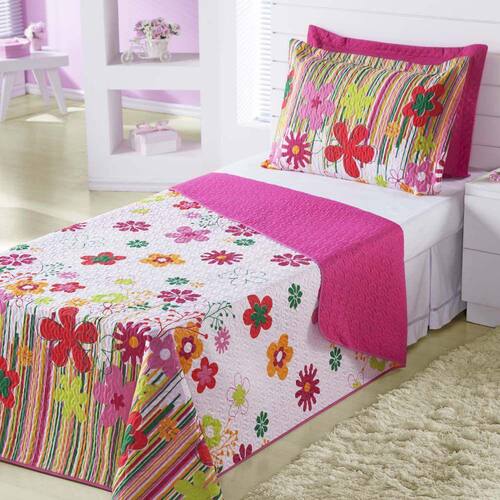 Kit Combo Infantil Cobre Leito E Lençol 5 Peças Garden PinkA coleção infantil foi elaborada para seu filho e filha. A coleção conta com as estampas futebol, joaninha, garden lilás e garden pink que irão alegrar o ambiente além de proteger a cama dos pequenos.Confeccionado em microfibra 100% poliéster, esse kit é composto por 01 cobre leito, 01 porta travesseiro, 01 lençol de cima, 01 lençol com elástico e 01 fronha. Conteúdo da embalagem Cobre leito- 01 cobre leito com medidas de 2,15 m x 1,50 m- 01 porta travesseiro com medidas de 65 cm x 45 cm Jogo de cama-01 lençol de baixo com elástico 1,88m x 0,88cm x 20cm-01 lençol de cima 2,15m x 1,60m-01 fronha 70cm x 50cm Composição textil Cobre leito- tecido superior: 100% poliéster estampado - enchimento: 100% poliéster- tecido inferior: 100% poliéster liso Jogo de cama- tecido 100% poliéster Ficha técnica Cobre leito- quantidade de peças: 02- cor: estampa garden pink- bordado: não- fabricação: matelado sem linha ultrassônico Jogo de cama- quantidade de peças: 03- cor: estampado garden pink- bordado: não- fabricado: n/a Orientações para lavagem- utilizar processo de lavagem muito suave ou manual;- temperatura máxima da água de 30°c;- não deixar o produto de molho, pois roupas de cama de cor forte podem desbotar;- utilizar sabão neutro.- evite sabão do tipo limpeza profunda e/ou tira manchas;- não alvejar / não branquear;- não secar em secador rotativo não utilizar secadora ;- não lavar a seco;- passar com temperatura baixa, sem vapor temperatura máxima de 110°c ;- vapor pode causar danos irreversíveis. Atenção- quantidade de peças vide campo conteúdo da embalagem.- pode ocorrer variação de tonalidade do tecido de acordo com o lote da matéria-prima.- verificar as dimensões do produto antes da compra.- é necessário levar em consideração a altura da cama ou a altura do box da cama + colchão, para que o caimento do produto seja perfeito.- siga as orientações de lavagem para aumentar a vida útil das peças.- variação das cores pode ocorrer de acordo com a configuração do monitor.- as peças decorativas não estão inclusas neste produto.- foto ilustrativa. Marca: Lux Enxovais