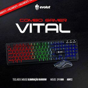 O Kit Combo Teclado e Mouse Gamer Evolut Vital EG-57 oferece uma solução completa para quem busca desempenho, conforto e estilo durante o uso diário ou em sessões intensas de jogos. Com teclas de perfil alto, iluminação Rainbow LED e layout ABNT2, o teclado garante excelente resposta e usabilidade. O mouse óptico acompanha o conjunto com resolução ajustável e design ergonômico, tornando o kit perfeito para jogadores e usuários que desejam um periférico funcional, resistente e visualmente atraente.