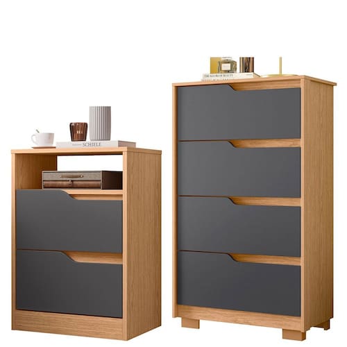 Precisando de móveis para o seu quarto? Que tal um kit cômoda com mesa de cabeceira? Legal, não? Afinal o kit vai te proporcionar diversas opções de armazenamento! Com a mesa de cabeceira você tem 2 gavetas com corrediças telescópicas e nicho para objetos e decorações e com a cômoda você possui 4 gavetas com corrediças telescópicas para acomodar seu vestuário ou objetos! Uma oportunidade incrível sem falar que ambos móveis são feitos com os melhores materiais do mercado! Aproveite esse e outros produtos incríveis da Casa Chick!