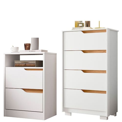 Precisando de móveis para o seu quarto? Que tal um kit cômoda com mesa de cabeceira? Legal, não? Afinal o kit vai te proporcionar diversas opções de armazenamento! Com a mesa de cabeceira você tem 2 gavetas com corrediças telescópicas e nicho para objetos e decorações e com a cômoda você possui 4 gavetas com corrediças telescópicas para acomodar seu vestuário ou objetos! Uma oportunidade incrível sem falar que ambos móveis são feitos com os melhores materiais do mercado! Aproveite esse e outros produtos incríveis da Casa Chick!