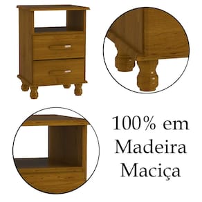 Características da Mesa de Cabeceira 2 Gavetas 100% Madeira de Pinus:
