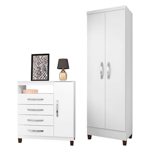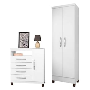 Kit Cômoda Sapateira 1 Porta 4 Gavetas Cannes Com Multi Egito 2 Portas Branco Incorplac