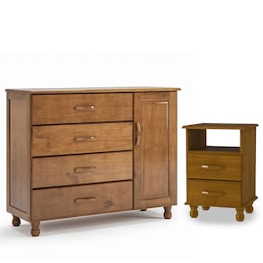 Transforme o seu quarto em um ambiente acolhedor e elegante com o Kit de Móveis em Madeira Maciça, composto por uma charmosa cômoda de 4 gavetas com sapateira e uma mesa de cabeceira com 2 gavetas. Fabricados em madeira maciça de pinus de reflorestamento, esses móveis combinam resistência, durabilidade e um toque rústico cheio de personalidade. A cômoda, com seus pés torneados e puxadores de madeira, oferece amplo espaço interno, ideal para manter roupas e acessórios sempre organizados. Já a mesa de cabeceira, compacta e funcional, conta com duas gavetas de corrediças metálicas e um prático nicho, perfeita para apoiar livros, luminárias e itens do dia a dia. O acabamento em pintura UV realça a beleza natural da madeira, garantindo sofisticação e charme a qualquer decoração. Um conjunto completo para quem busca qualidade, estilo e o aconchego da madeira verdadeira no quarto.