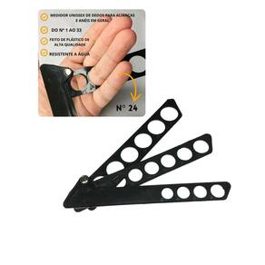 Kit Completo 3 Aneleira Régua De Plástico Para Medir Dedo Medidor Anel Aliança 2º à 33º Aneleira plástica com tamanhos de 2 ao 33 é indicado para medir dedo, para alianças e namoro, noivado e casamento, assim como anéis de modo geral. Fácil de usar e operar a preços acessíveis. Ferramenta prática do tamanho da joia do tamanho do dedo para o joalheiro. Descrições: Leve, portátil tomado e tão conveniente. Alto desempenho e em acabamento requintado. É preciso, permite que você tome o tamanho do seu dedo. Adequado para uso doméstico ou uso semi-. Marca: Não Informado