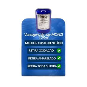 Kit Completo 3 Monzi 125Ml Limpa Chapeados Prata Ouro + 3 Flanelas Mágica Polimento Descrição do produto: Atenção para o modo de usar Modo de usar: - passe o limpa chapeados monzi na semijóias banhada folheada ou cobre utilizando algodão. - enxágue em água corrente e enxugue bem com uma flanela mágica. Descarte o algodão. - para objetos maiores, utilize um recipiente de vidro ou plástico com imersão da peça por 10 segundos apenas. - lave bem o recipiente utilizado. - descarte o produto em água corrente. - não risca e nem desgasta a prataria. - limpa monzi retira a oxidação e a gordura, deixando ainda, uma camada de proteção no objeto.