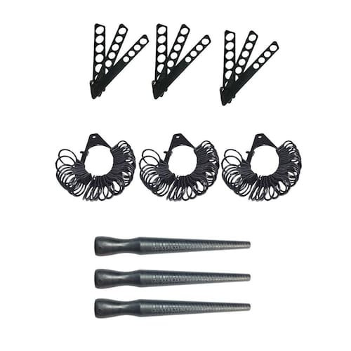 Kit Completo 9 Aneleira Régua Plástico Para Medir Dedo Medidor Anel Aliança Aneleira plástica com tamanhos de 2 ao 33 é indicado para medir dedo, para alianças e namoro, noivado e casamento, assim como anéis de modo geral. Fácil de usar e operar a preços acessíveis. Ferramenta prática do tamanho da joia do tamanho do dedo para o joalheiro. Descrições: Leve, portátil tomado e tão conveniente. Alto desempenho e em acabamento requintado. É preciso, permite que você tome o tamanho do seu dedo. Adequado para uso doméstico ou uso semi-. Marca: Não Informado