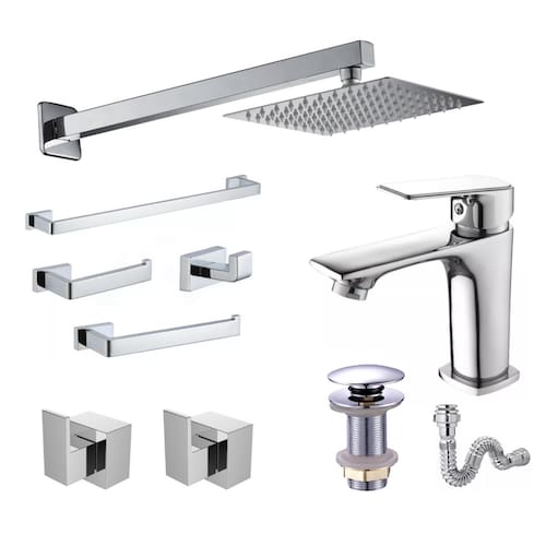 Produtos fabricados em latão com acabamento cromado, resistente à corrosão.