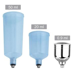aerógrafo profissional copo fixo. Dupla ação de 0,3mm. Reservatório fixo de 7cc. Pressão de trabalho: 15 a 50 psi. Rosca de entrada de ar: 1/8 bsp. Itens inclusos: