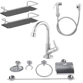 Kit completo para banheiro / 1 torneira cod 123 + 2 porta shampoo reto fumê + 1kit banheiro + 1 ducha higienica cod318 Seja bem vindo a loja oficial minhacazza