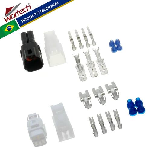 Código: W-/1859Características do produto:-Conector: Em Nylon de alta qualidade-Terminais: metálicos estanhados de alta condutividadeItens Inclusos:- 1 Conector 4 vias macho- 1 Conector 4 vias fêmea- 1 Conector macho 3 vias- 1 conector fêmea 3 vias- 7 terminais macho- 7 terminais fêmea- 8 borrachas de vedaçãoGarantia total de 3 meses contra defeito de fabricação.