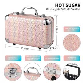 O Kit Completo de Maquiagem Hot Sugar Coração Rosa oferece design all-in-one que organiza todos os itens essenciais em um estojo reutilizável compacto com dimensões de 26,4 x 16,5 x 9,5 cm, ideal para otimização de espaço residencial ou em bolsas de viagem. Equipado com alça superior para transporte em eventos como festas, teatros e apresentações, inclui minipaletas coloridas removíveis para uso modular. O estojo exibe padrão decorativo em coração rosa com couro sintético e espelho embutido, permitindo armazenamento de cosméticos, ferramentas de aplicação, joias e relógios. ?