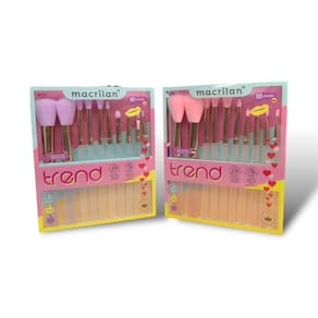 O Kit pincel para maquiagem Macrilan, uma empresa brasileira, foi especialmente desenvolvi- do para uma aplicação de maquiagem homogênea. Isso porque o kit é composto de pincéis com cerdas sintéticas, macias que proporcionam um resultado leve e uniforme.