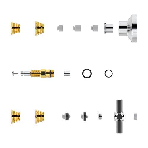 O que vem na caixa: 1 Parafuso 1 Conjunto Castelo e Haste 3 Complementos 4 Módulos Rosca 1 Anel O'ring menor 1 Anel O'ring maior 1 Vedante menor 1 Vedante maior 1 Volante C-37 1 Canopla