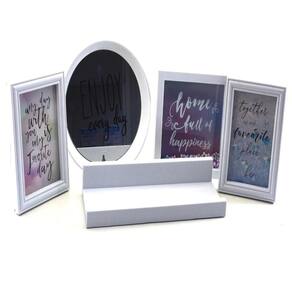 Contém: 1 espelho, 2 porta-retratos, 1 quadro e 1 prateleira;