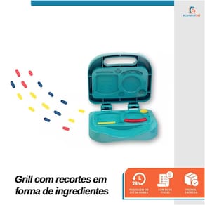 Com este kit, as crianças podem usar a imaginação para criar seus próprios lanches e brincar de faz-de-conta. O grill possui recortes em forma de hambúrguer, queijo, tomate, alface e outros ingredientes, que podem ser moldados com a massinha de modelar. As crianças também podem usar os pratos, a espátula e o pegador para servir seus lanches.