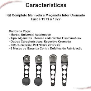 Kit Completo Manivela E Maçaneta Inter Cromado Fusca 71 A 77