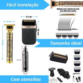 Kit completo : máquina dragão, barbeador e aparador de pêlos kemei - linha premium