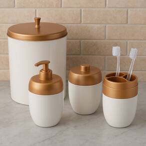 Kit Completo P/ Banheiro 4 Peças com Lixeira + Porta Escova Sabonete e Algodão