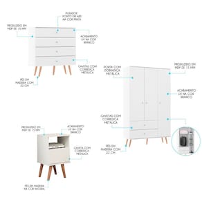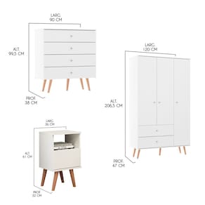 Conteúdo da Embalagem: 01 Kit Completo para Quarto Guarda Roupa Cômoda Mesa Retrô Menu Móveis