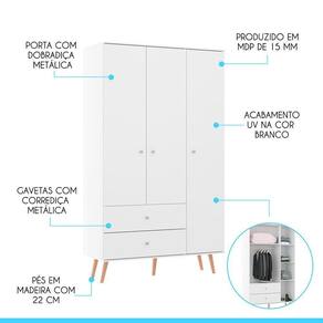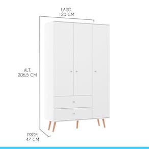 Dimensoes do Guarda-Roupa: Altura: 206,5 cm Largura: 120 cm Profundidade: 47 cm Peso: 69,6 kg