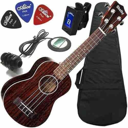 A shelby derruma a máxima de que instrumento barato é instrumento de má qualidade. Entrando no mercado com força total, a shelby apresenta-nos sua linha de ukuleles desenvolvidos para oferecer excelente sonoridade e timbres característicos do instrumento. Acabamento cuidadoso e a certeza que apenas madeiras de qualidade foram utilizadas em sua fabricação. O ukulele shelby modelo soprano su21r possui uma qualidade sonora excepcional, com um acabamento rústico e lindo, característica que permite um visual diferenciado. Utilizando madeiras nobres, seu tampo, lateral e fundo são feitos de jacarandá rosewood e suas tarraxas prateadas. A melhor opção para quem deseja o melhor ukulele, com preço baixo e bonito. Características su21r Tampo top jacarandá rosewood Lateral e fundo back & side jacarandá rosewood Escala e cavalete fingerboard & bridge jacarandá rosewood Tamanho size soprano 21 Tarraxas : prateadas Acabamento : acetinado Itens inclusos Ukulele su21r shelby by eagle Captador piezo sonica Capa Afinador Palhetas Certificado ..::; link promocional para o pagamento avista :::.. 812660274-kit-completo-ukulele-soprano-eletrico-shelby-eagle-su21r-nff-jm