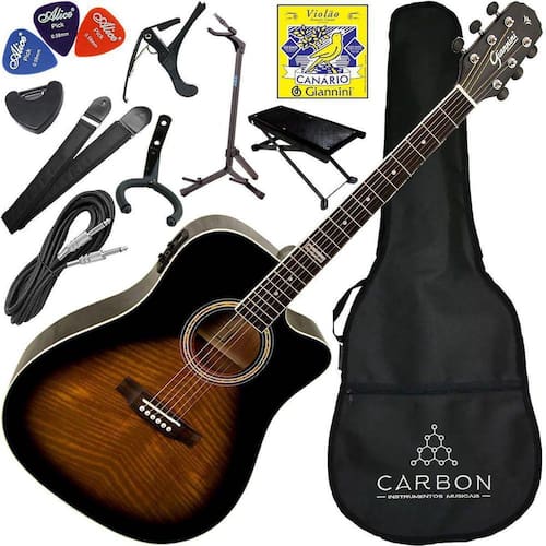 Kit completo violão folk eletroacústico giannini gf1d 3ts A série performance traz uma ampla variedade de modelos de violões aço e náilon, com formatos como o dreadnought, gran auditorium, mini-jumbo e flat.