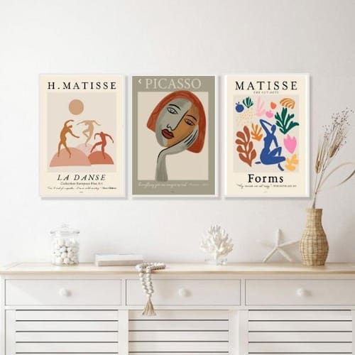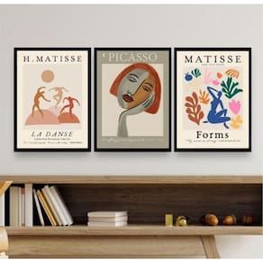 Kit composição 3 quadros arte matisse picasso 45x34cm Moldura: madeira branca Informações do produto tire todas as suas dúvidas no descritivo abaixo: decoração para quarto, sala, cozinha, escritório, área gourmet e muito mais. Chega de paredes vazias. Medidas - cada peça tem 45x34cm a3 . Material do papel - papel fotográfico brilhante de altíssima resolução acabamento - todos os quadros são acompanhados de uma película de acetato para proteção da imagem. - os quadros são embalados de forma segura com plástico bolha com camada dupla de acordo com o tamanho dos quadros. Garantia - garantia de 3 meses. Meu quadro chegou. Como posso fixá-lo Você precisa apenas de um martelo e um prego, pois os quadros já vão acompanhados de penduradores. Esta é a forma mais indicada. Caso prefira, você pode utilizar uma fita dupla face neste caso, sugerimos de alta qualidade para evitar que descole e seu quadro caia . Como posso limpar meu quadro A limpeza é feita como um móvel comum da sua casa. Apenas um pano seco ou espanador são suficientes para tal Ean: 7895559203896
